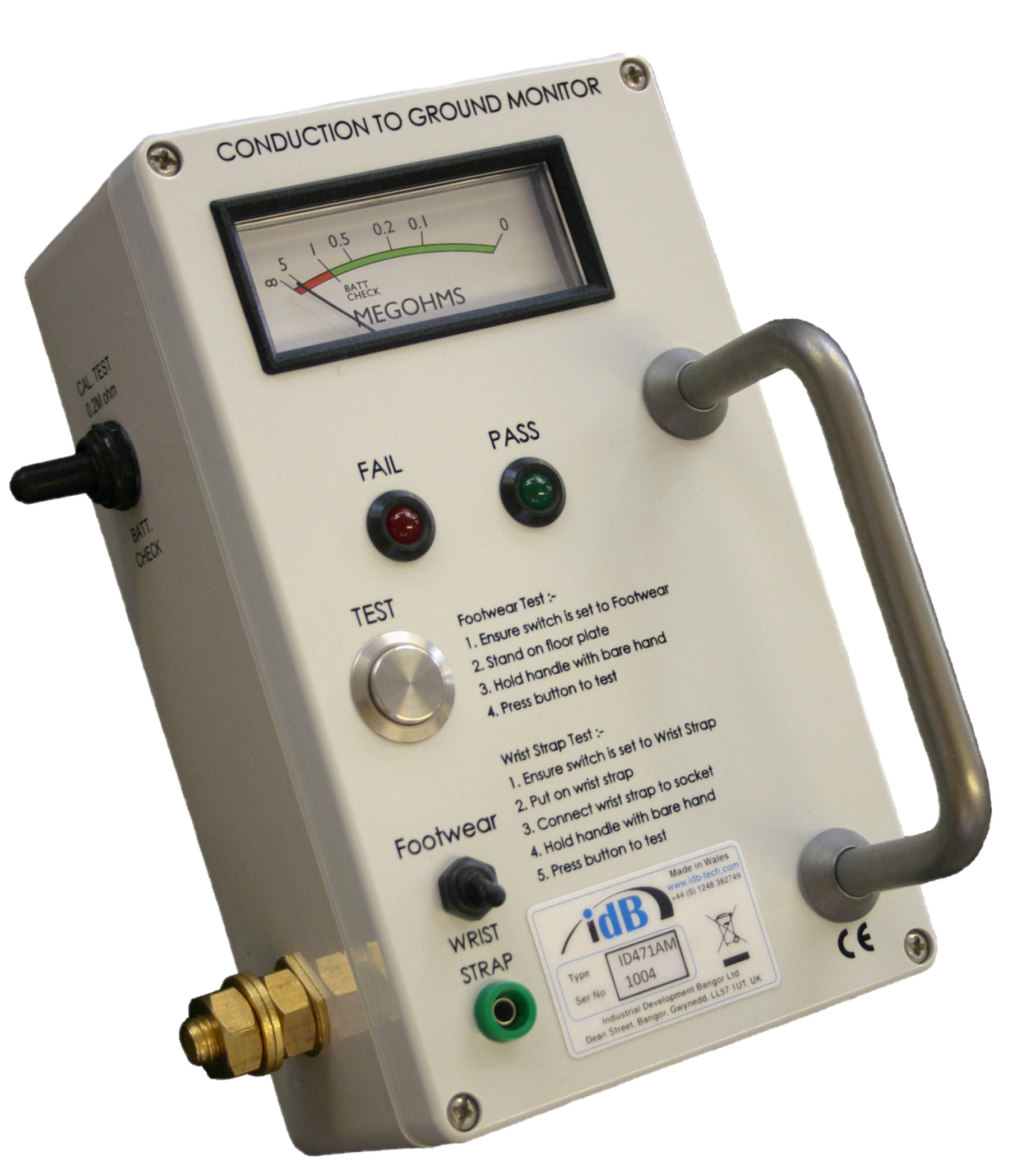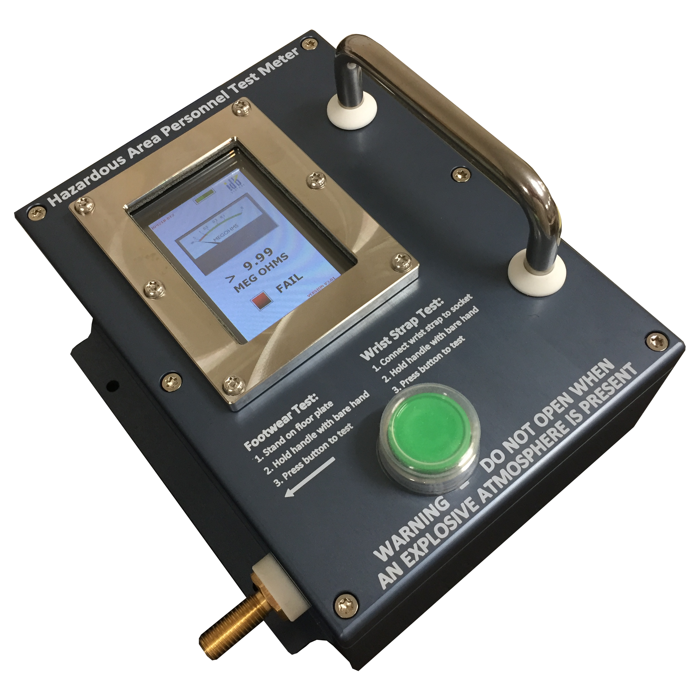 The ID921S Hazardous Area Personnel Test Meter is designed for use outside of Hazardous areas to screen personnel for the effectiveness of their wrist straps and conductive footwear.